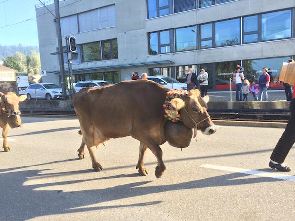 夏のあいだ、山の上で放牧されていた牛たちが一斉に村へと下りてくるのですが、そのあと村で開催される牛の展示会・コンテストがこのフィーシャウです。