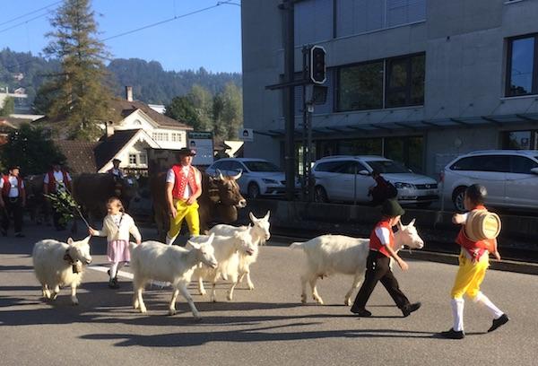 アッペンツェル地方で秋祭りと同時に開催されるフィーシャウ(Viehschau)。