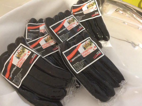 このAppenzeller Alpenbitterwürstli(アッペンツェラーアルペンビターヴルストリ)というソーセージ、Würst(ヴルスト)はソーセージ、「li」は「小さい」という意味。