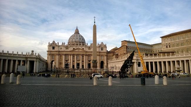 先日、バチカン市国のサン・ピエトロ大聖堂前の広場にてクリスマスツリーの設置作業が行われました。毎年異なる場所よりやって来るモミの木は、今年は北イタリアのトレント自治県の東アルプスにある森から来ました。アルプスを出発したモミの木は、10日間の長旅を経て、無事、夜にローマに到着しました!