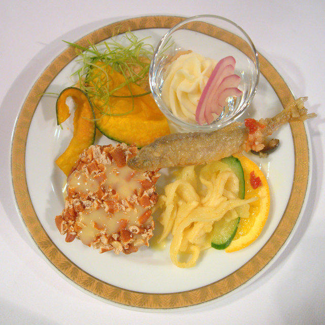 ゆり根ムースのねっとり感と甘味、味がしっかりしているシシャモのマリネは、