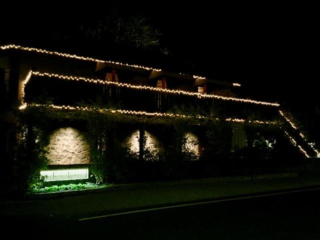 フレンチランドリーの畑のXmasツリーは、レストランの入り口ドアに合わせてブルーのライト。 光が吸い込まれていくようなそれくらいの暗闇、静寂。帰り道、ヨントビル(Yountville)のメインストリートを通ってみた。