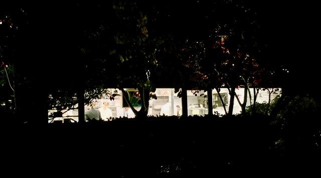 駐車場に車もないし(もちろんディナー終了したら帰っちゃうもんね)街灯の下からの撮影なのでやや明るいけど、昼間の賑わいは全くない。