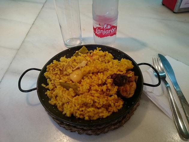 お値段は、バレンシア風パエリアとミネラルウォーターで4.70ユーロ。日本円でおよそ600円くらいでしょうか。