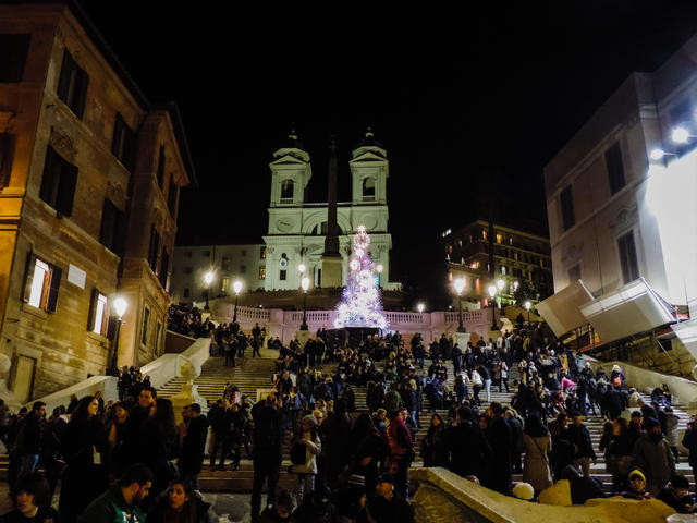 ↑ スペイン階段です。今年のクリスマスツリーは花火の様なイルミネーションで色が段々変わって行きます。