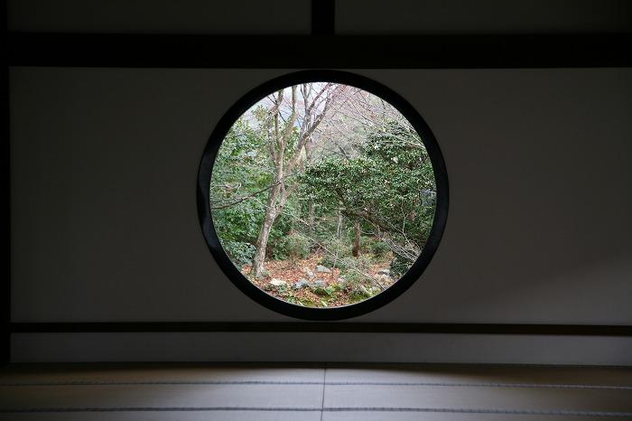 丸い「悟りの窓」は禅と円通の心、さらに大宇宙を表し、一方、四角い「迷いの窓」は