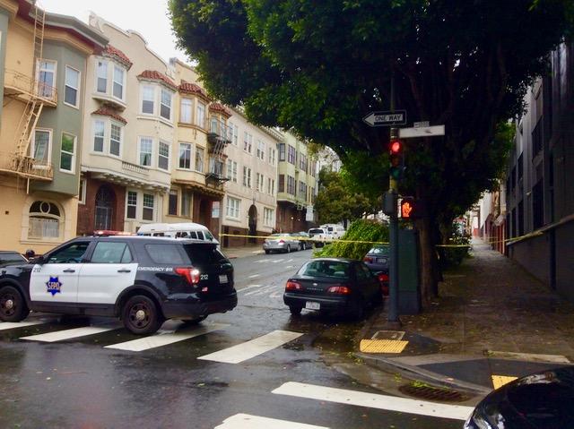 出かける途中で倒木に遭遇。 黄色いテープが張られ侵入できないようパトカーがブロック。 木の下敷きになっている車はどうなっちゃってるんだろう…。