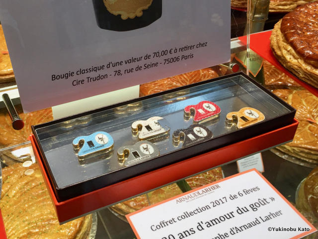 私も今年アルノー・ラエールのガレットを買ってみましたが、本当にフェーヴは外付け。店員さんも「パティシエの考え方によりガレットの中にフェーヴは入っていません」と説明していました。