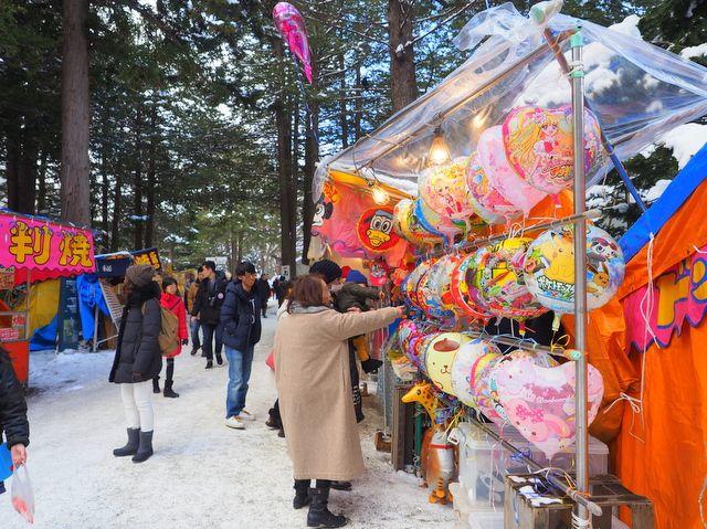 "Food Stalls in the grounds of Hokkaido Jingu Shrine in New Year's Holidays"
