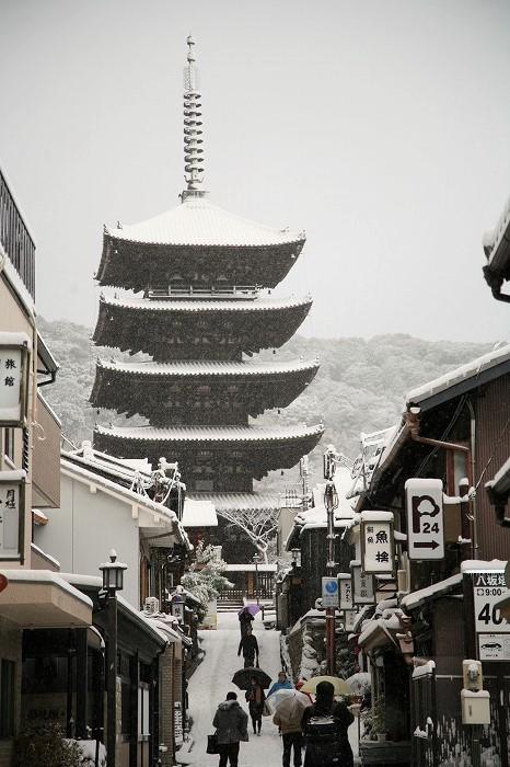 数年に一度の強い寒波の影響で1月15日の京都は、雪の朝でした。