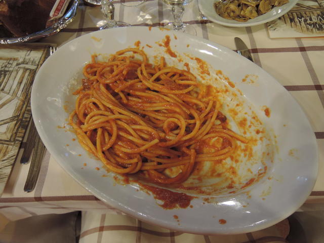 皆さんもご存知のこのパスタ!残念ながら昨年の地震で破壊されたアマトリチェは未だに再建築に追われていますが、せっかくだからローマへ来た時にはこの一品も食べたい!!!と熱望しローマに住んでいるイタリア人の友人に連れていってもらいました!
