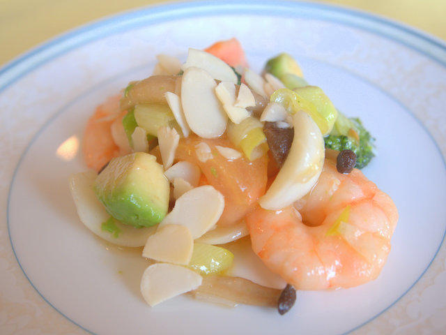 さらにパリパリのアーモンド、プリプリの海老、柔らかくジューシーなトマトの
