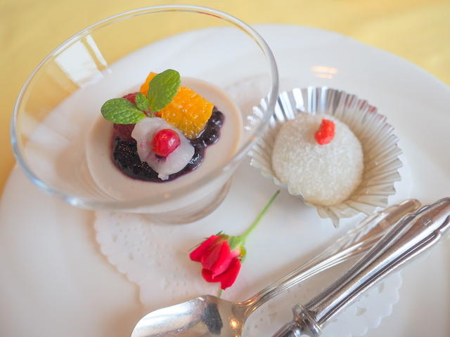 杏仁豆腐は喉越しよく、ココナッツ団子はまだ温かくておいしい!
