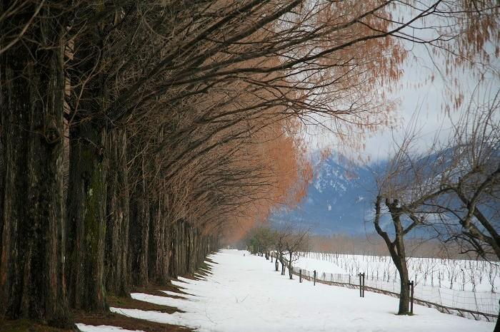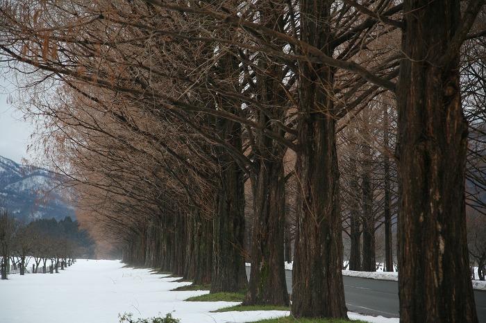 冬景色広がる、高島市マキノ町の「メタセコイヤ並木道」。