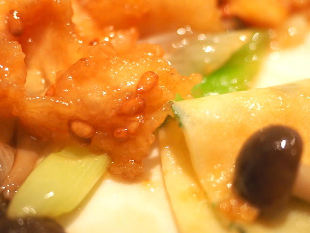 “Linseed oil-fried shrimp and chicken seasoned with oyster sauce, soybean crape”