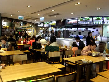 両方とも沢山の席がありますし、価格も高くはありません。フードコート周辺で働いている人が食事に来るので国際的な雰囲気もありますので、食事の選択肢として悪くないと思います。