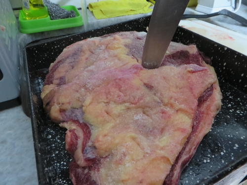 そして、上のお肉、バシオです。一頭の牛のこの部位は脂身がすくなく乾いていなくちょうどよく、卸の専門店でお得にかったのは子牛ではなくNovilloノビージョは去勢されたおすの成牛です。