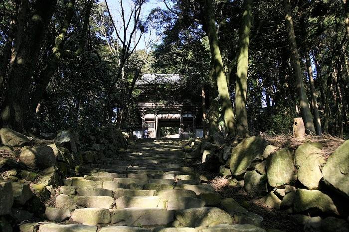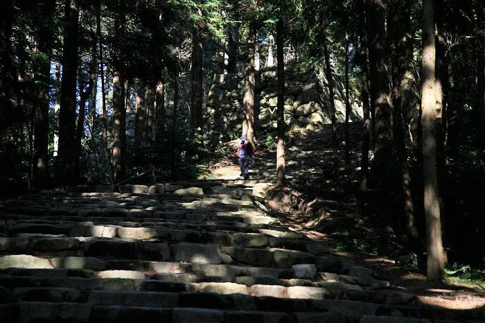 順路は長い石段を登って天主跡まで行き、帰路は三重塔を見ながら
