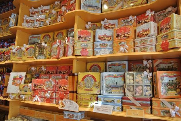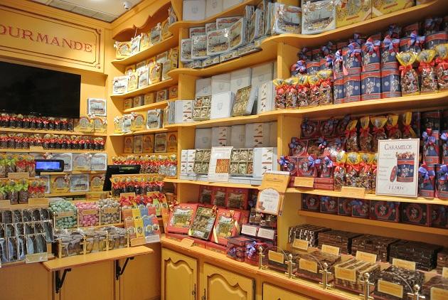 黄色いかわいらしい店内にはクッキーやチョコレート、ヌガーなどのお菓子が所狭しと並びます。