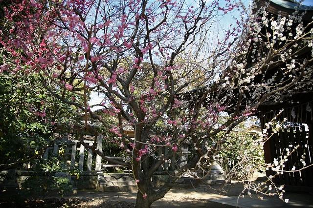 ↓この梅は、一本の木から紅梅と白梅が咲く木。