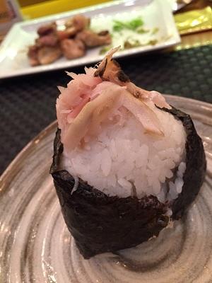 アジのあぶり、お味噌味のなめろう風だったかな。