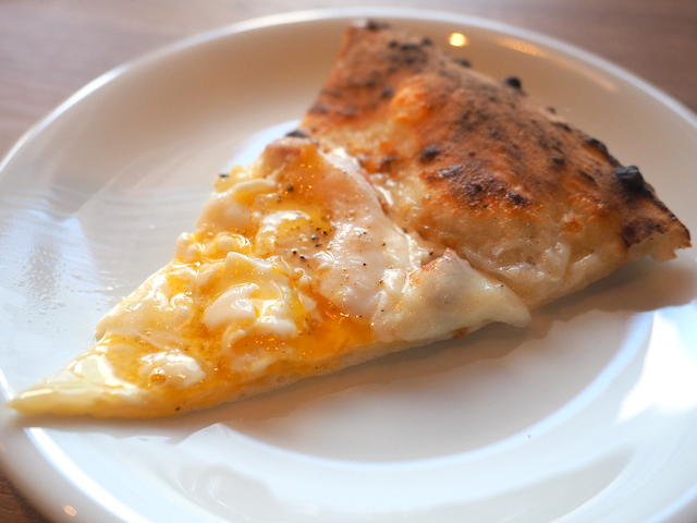 スタッフの方に卵を崩してもらい、トロットロの半熟卵乗せピッツァを堪能。