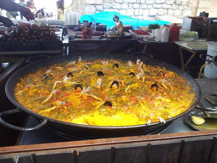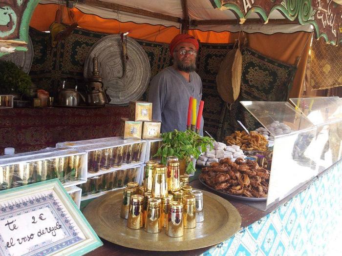 売られている食べ物は、子豚の丸焼きや、肉の炭焼き、ケバブ、焼き立てのパン、パエリア、ガリシア風のタコ、アラブのお菓子などが並びます。