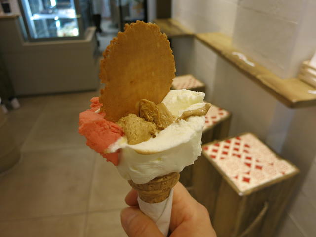 私が注文したのは3種類のジェラートコーンなんと、2,3ユーロ!!!安い!うまい!