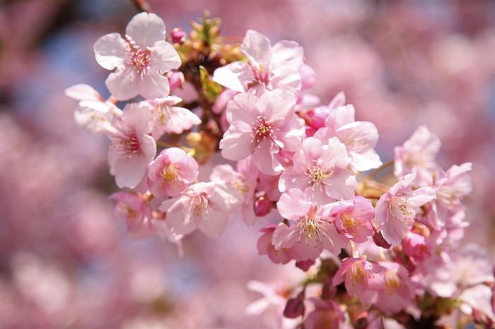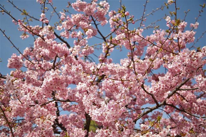 青空に咲く河津桜に見入ってしまいました。