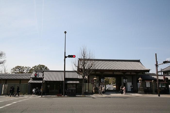 広い東寺の境内。境内には、散策自由の境内と