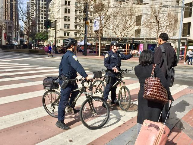 道に迷った旅行客に案内しているお巡りさん。 警察官は困っている人達にはとっても親切で優しい。 善良な市民には威圧感全くなし、この人達お巡りさんと記念写真撮ってた ^_^ V