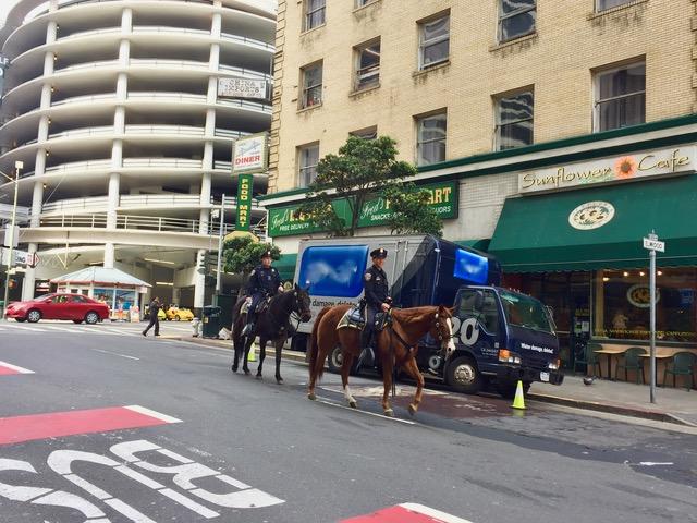 こちらもユニオンスクエアを警ら中のお巡りさんと警察馬。