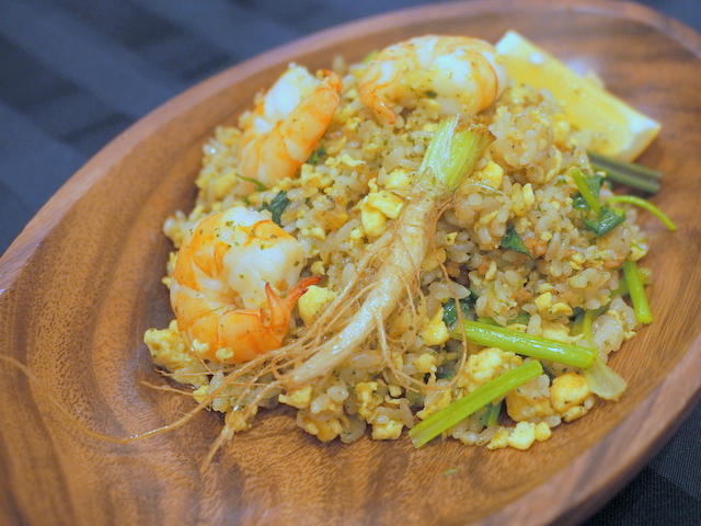 シメはパスタか、ピザか、ご飯かは悩めるところですがパクチー醤油の焼飯に。