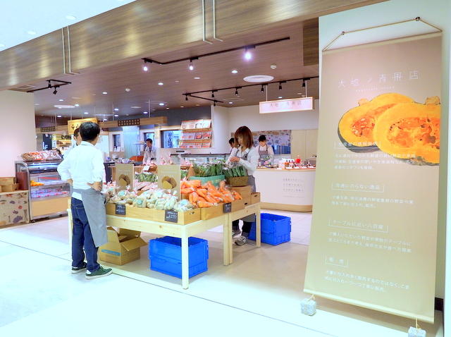 大手スーパーマーケットがありますが、そのスーパーとは別に、こだわり野菜が並ぶ、2017年3月15日に新さっぽろ”サンピアザ”地下1階にオープンした八百屋さん「大地ノ青果店」です。