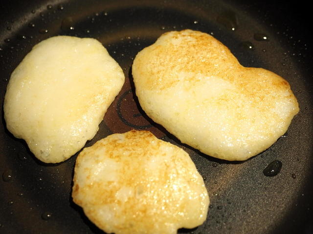 強い粘りが特徴で、すっただけの長芋をそのまま油をひいたフライパンで焼くと、ふわっふわな食感の長芋が焼きあがりました!