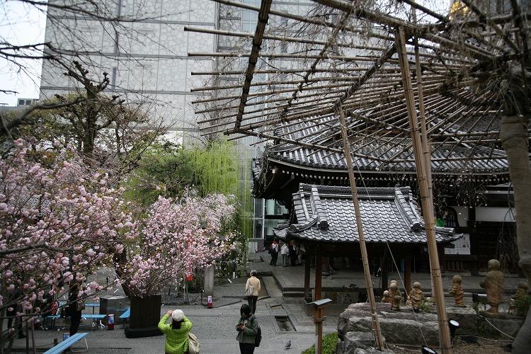 六角堂の有名な桜「御幸桜」は、まだ蕾が多く