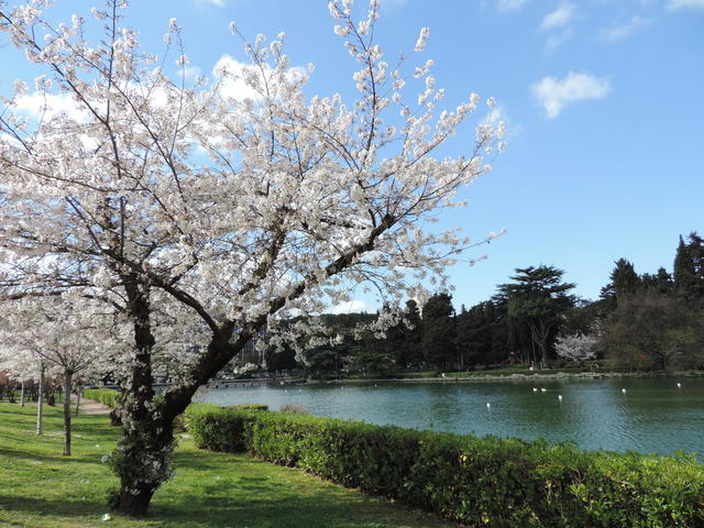 ↑ 人工の湖をぐるっと一周する道が”日本の散歩道”と名付けられています。日本から約2500本の桜がプレゼントされたプロムナードは、1959年7月20日に岸信介首相が記念植樹をしてオープンしました。枯れてしまった桜も多いですが、今日ではイタリア人の間では”花見クラブ” なるものも存在し、日本の桜は圧倒的な人気を誇っています。