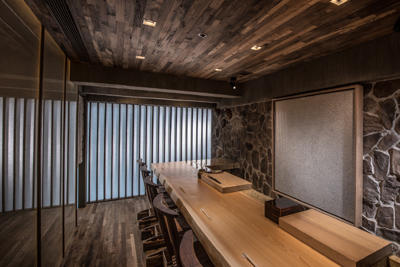 場所は上環(Sheung Wan)にある荷李活道(Hollywood Road)という骨董品が多く集まる通りの一角にあります。店のカウンターは7メートルのヒノキを使っている落ち着いた店内です。握りは皿ではなくヒノキの上に直接置いてくれます。もちろんアシスタントの方がすしがおいたヒノキの部分をしっかりと拭いてくれるので衛生的には安心です。