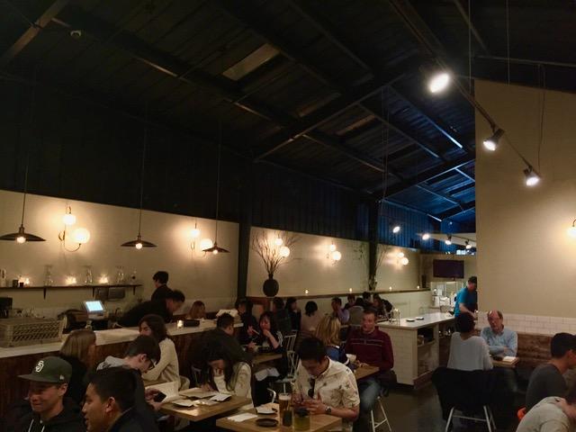 マーケット通りから南側(South of Market)はかつては倉庫や町工場が多くあっていわゆる場末な場所だったけど、2000年代始め頃からどんどん再開発が始まり、金融街からも近いこともあり、今 "新規オープン" は『SOuth of MArket地区(SOMA地区)』が多い。 店の作りも倉庫のだった頃の天井の高さを生かしたりあえて鉄骨むき出しにしたりとデザイナーさんの感性がいかんなく発揮されている。 いざっは、以前ミッション地区で週末だけのポップアップ店舗だけだったのがローワーヘイト(Lower Height)にグランドオープンし、連日行列ができている(少なくともみんなで食べ行こ〜って時は外に10人以上待ってるんで毎回撃沈返り討ちみたいに帰ってくる)2店舗目ができたのは聞いていたので、ポップアップ店舗以来の再訪だった。