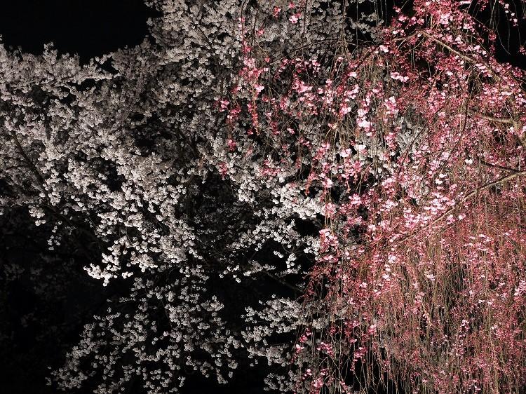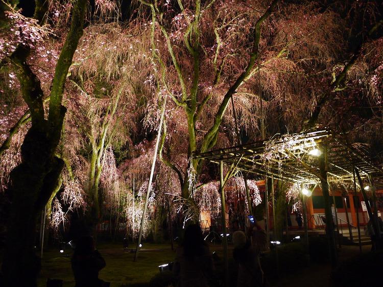 今年は桜の開花が遅れ気味で、紅枝垂れ桜は七分咲き位。