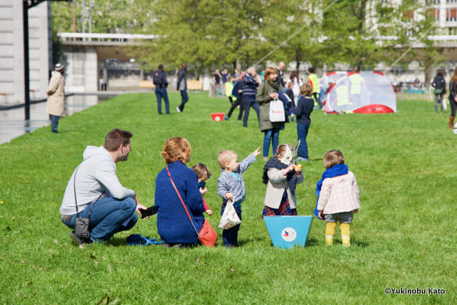 何といっても子どもたちにとっては、「シャッス・オ・ズー」と呼ばれるタマゴ探しが、復活祭の楽しみにです。毎年パリ市内でも大規模なイベントが行われており、(いつもはエッフェル塔前のシャン・ド・マルス公園でしたが)今年は15区にあるアンドレ・シトロエン公園にて、復活祭の日曜と翌月曜に同イベントが開催されています。