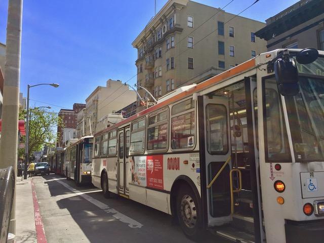 金融街からノブヒル間は停電で各交差点でケーブルカーが停車。