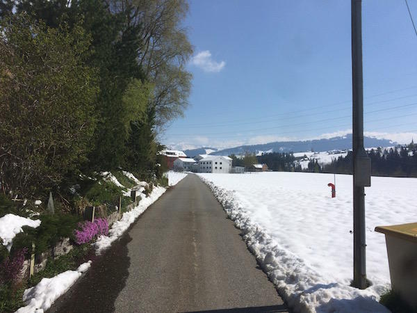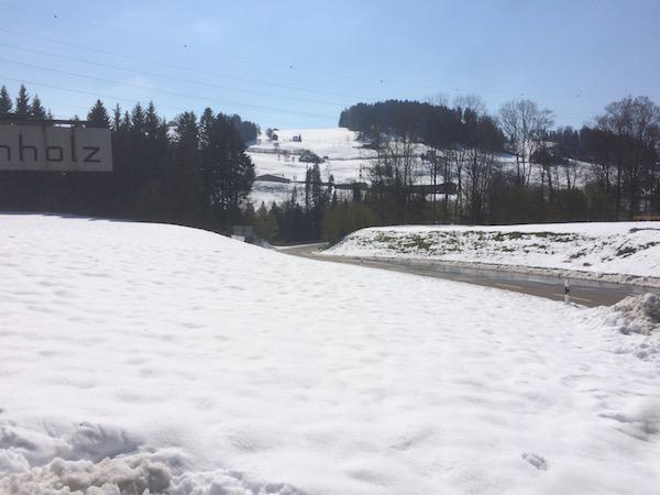 大雪になったのは4月29日で、粉雪でも、ぼたん雪でもない、けれどもしっかり積もる雪だったので、道にはまだまだ30センチほどの雪がつもったまま残っています。