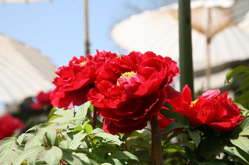 和傘は雨や陽射しから、牡丹を守る為にたてられていますが、