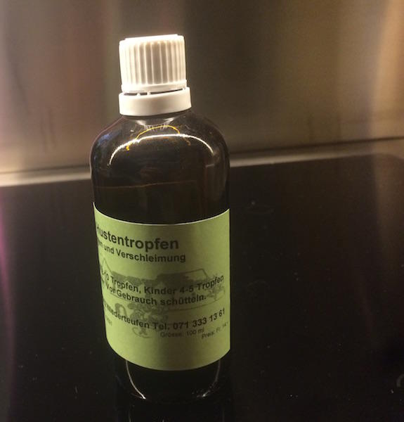 Husutentropfen(フーステントロップフェン、咳の一滴)というシロップです。