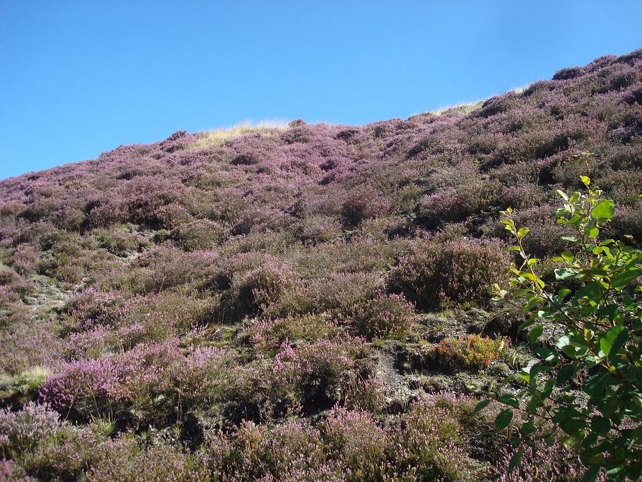 ↓このように見事なヒースの花盛りを見たければ、例年ならば7月中旬~8月くらいがベスト。(ちなみに、この満開ヒースを堪能したのは8月下旬のウェールズでした)