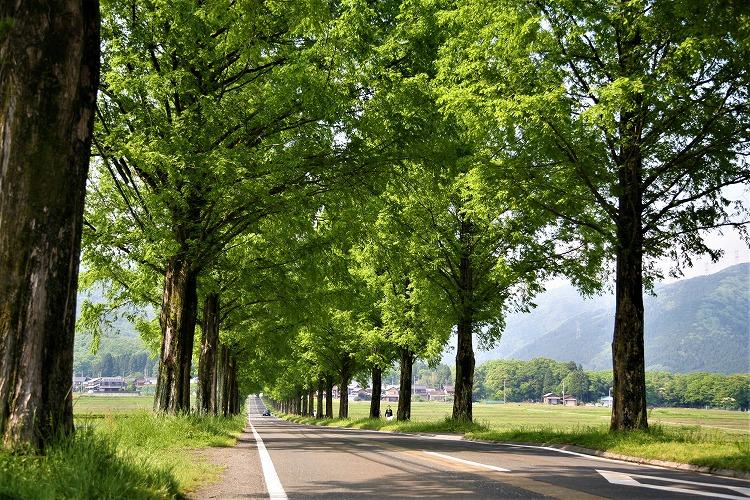 新緑の道が続く、滋賀県高島市マキノ町メタセコイヤの並木道。