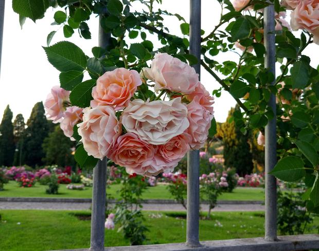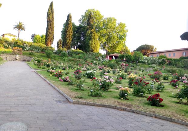 ↑ 面積が広い南側のバラ園です。一般的に女性はお花が好きだと思いますが、バラ園にはスーツ姿で歩くイタリアの男性も多くいます。