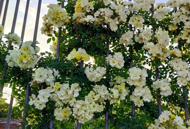 ↑ バラ園の柵からも多くのバラがはみ出していますが、それらも美しいです。道路の方からも見てみて下さい!