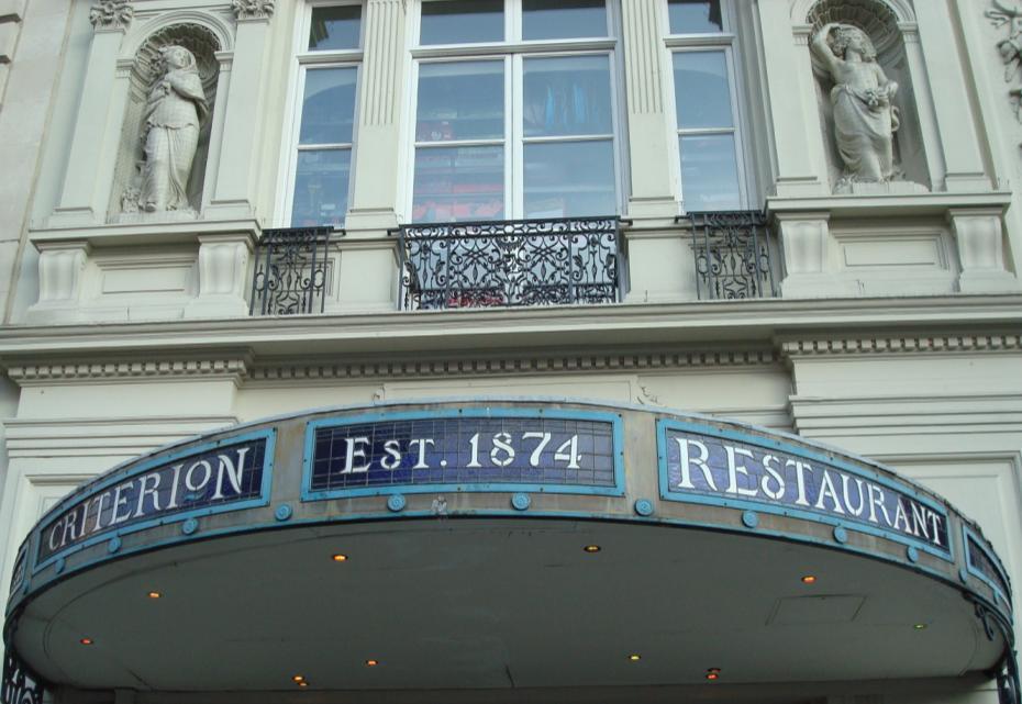 ピカデリー・サーカスにある「クライテリオン」という、シャーロック・ホームズで有名な作家コナン・ドイルもお気に入りだった所。